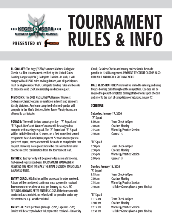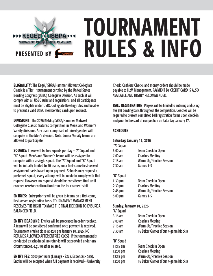 JANUARY 17-18 / Hammer / Kegel / ISBPA Collegiate Classic
